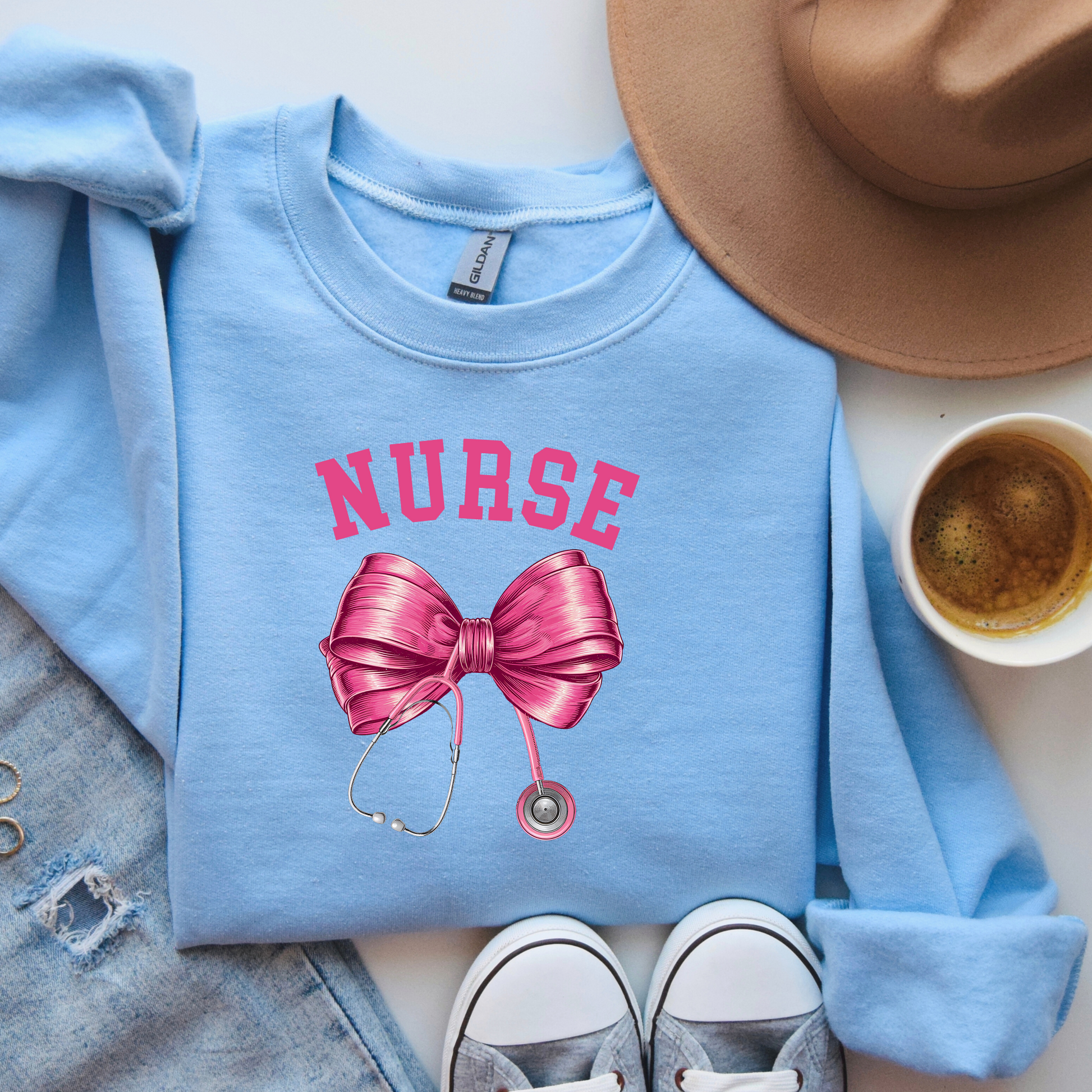 Nurse Pink Bow Crewneck Sweatshirt