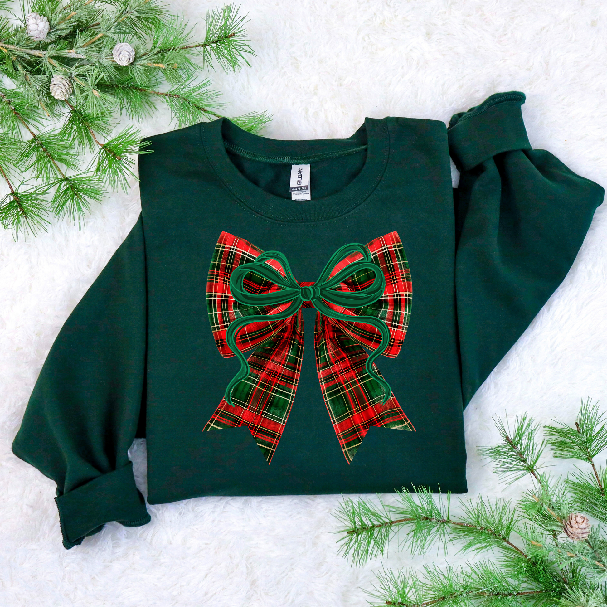 Plaid Bow Christmas Crewneck Sweatshirt | Preppy Holiday Sweatshirt | Gildan 18000
