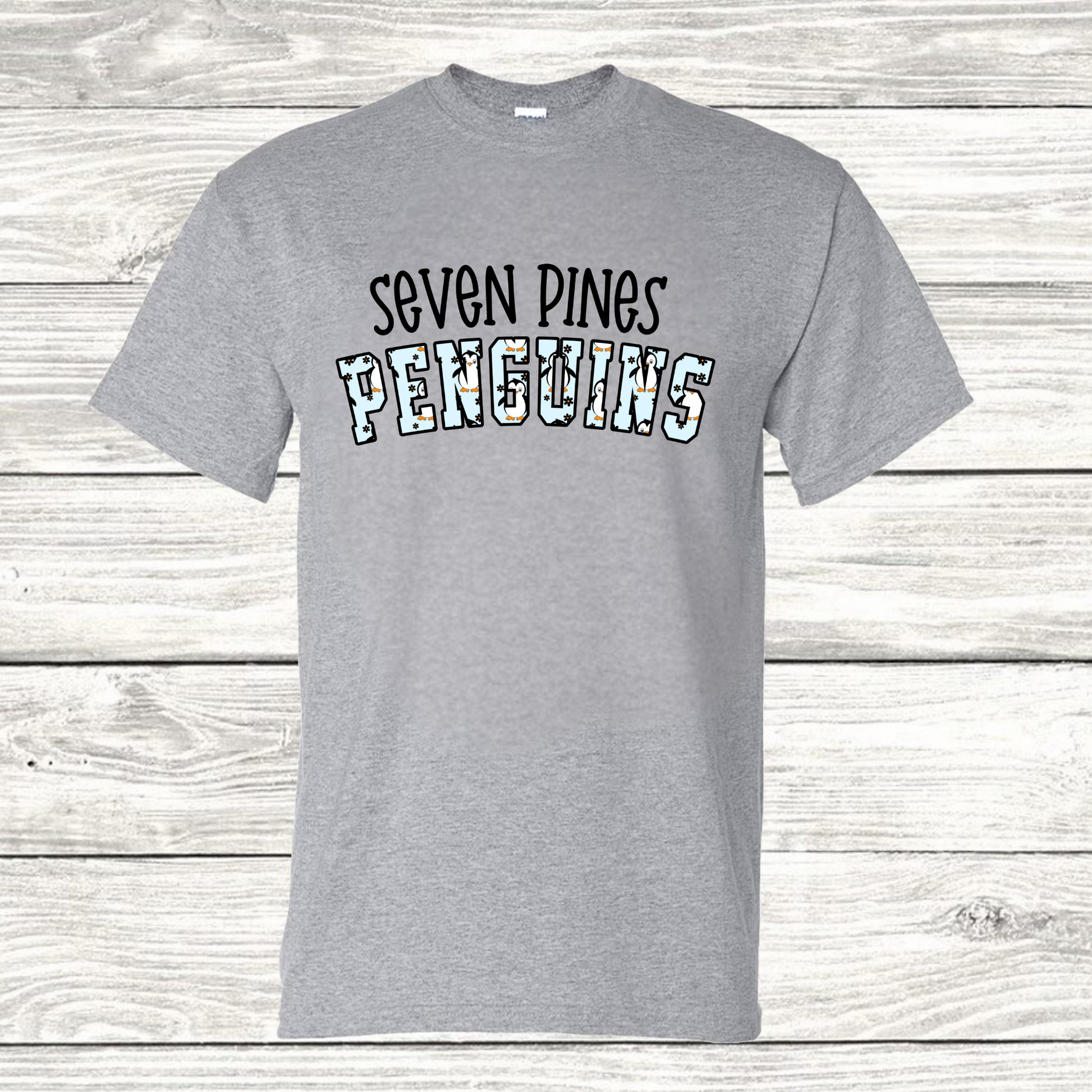 Grab this Seven Pines Elementary custom spirit wear shirt today and start showing off your Penguin pride!