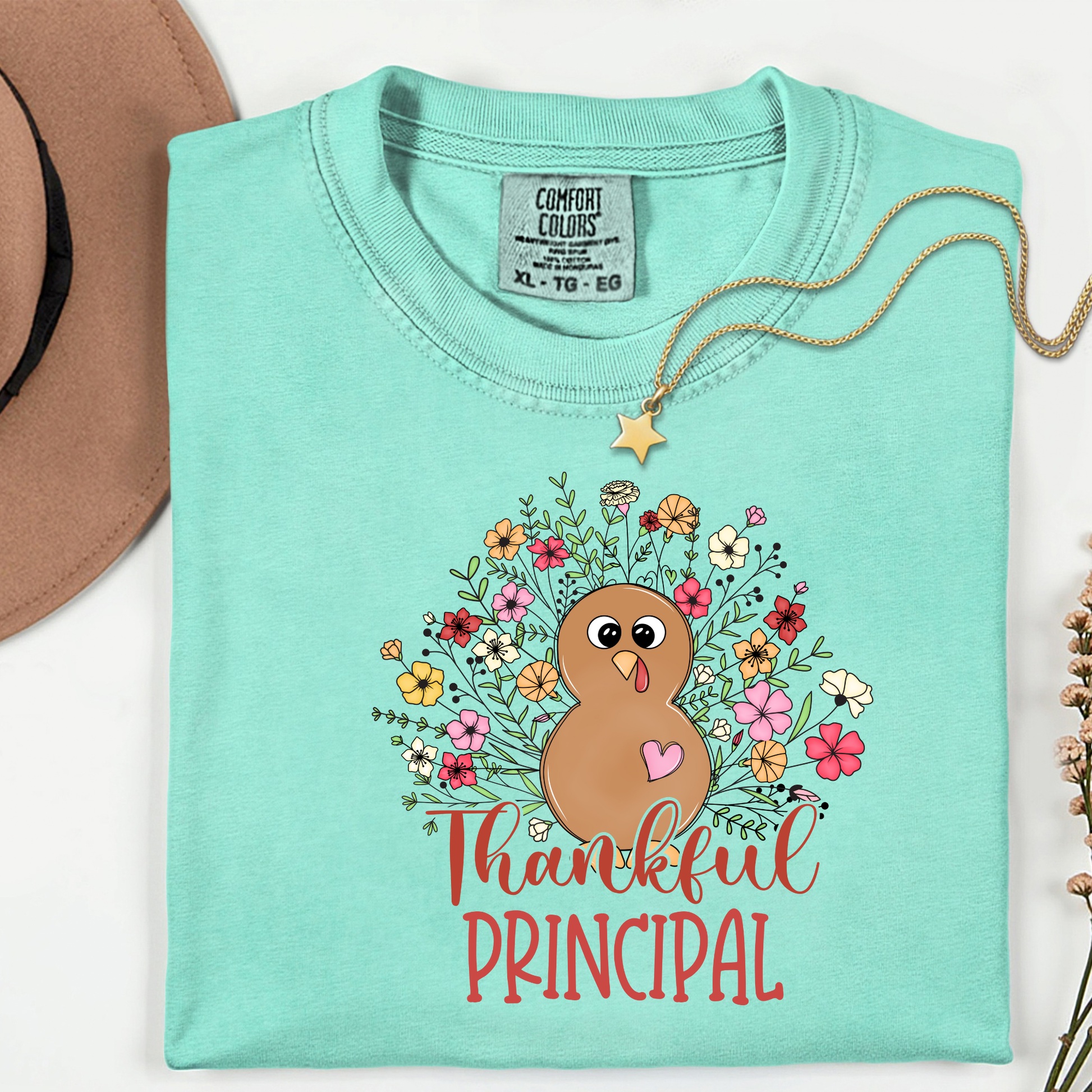 Thankful Principal Shirt • Comfort Colors 1717 • Thanksgiving Teacher Shirt • Floral Turkey Fall Shirt • Principal Appreciation Outfit